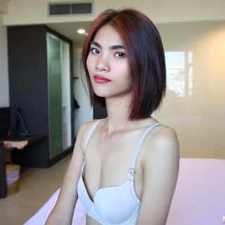 I think Noey has to be the skinniest chick I've come across, and I wanted a piece of that skinny ass one more time. She came at me with the same kind of aggressive blowjob as she did the first time; if giving blowjobs was an Olympic sport, she would win a gold medal. But the fun didn’t stop there as we were just getting started, so I lubed up her hairy cunt with a little cunnilingus. Once adequate lubrication was applied from my tongue, I slid my erect dick inside her from behind. This girl's pussy is like silk, with my cock sliding inside without resistance but with enough pressure to send my toes curling. I gotta say I enjoy banging this slut from every angle, and at the top of my list is doggystyle for sure. I love all variations of doggystyle and looking down at her ass spread wide in front of me really fired me up. I decided to shoot my hot loads all over her this time and then send her on her way.